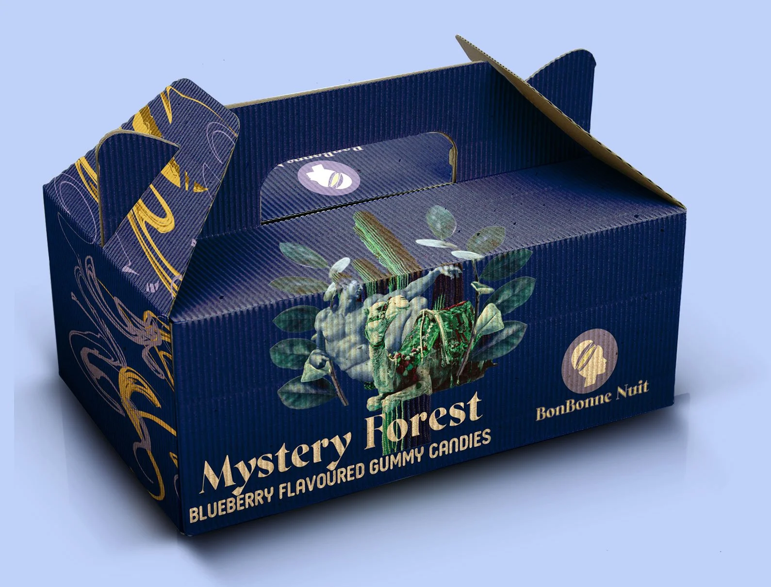 BonBonne Nuit is a candy shop located in England. In French, bon bon means candy, and Bonne Nuit means good night. Therefore, the two French words combined together become the brand name, BonBonne Nuit. The concept behind this shop is to let their customers have a taste of their own lucid dreams. In order to fully bring out the concept, imagination is key. The design of the packages uses a montage style that brings together surrealistic elements. Since lucid dreams are controllable, the stories of each package are suggestive of the desires people most likely would have. Moreover, the conceptual names of each product are meant to trigger imaginative sceneries in customers’ heads.